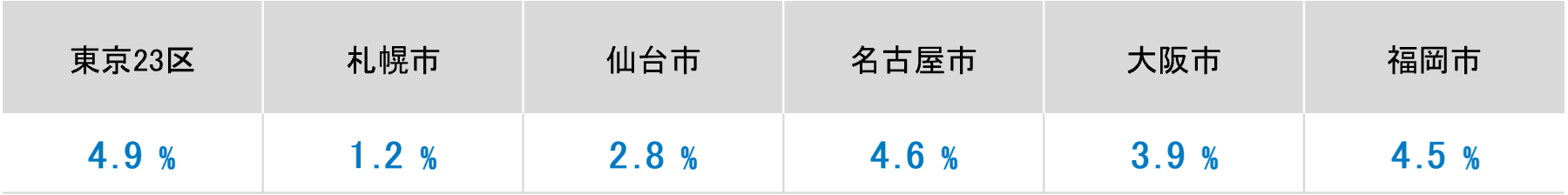 その他の全国6大都市の大規模ビル(東京・札幌・仙台・名古屋・大阪・福岡)のマーケットデータをまとめた各都市のプレスリリースは、下記リンク先よりダウンロードいただけます。