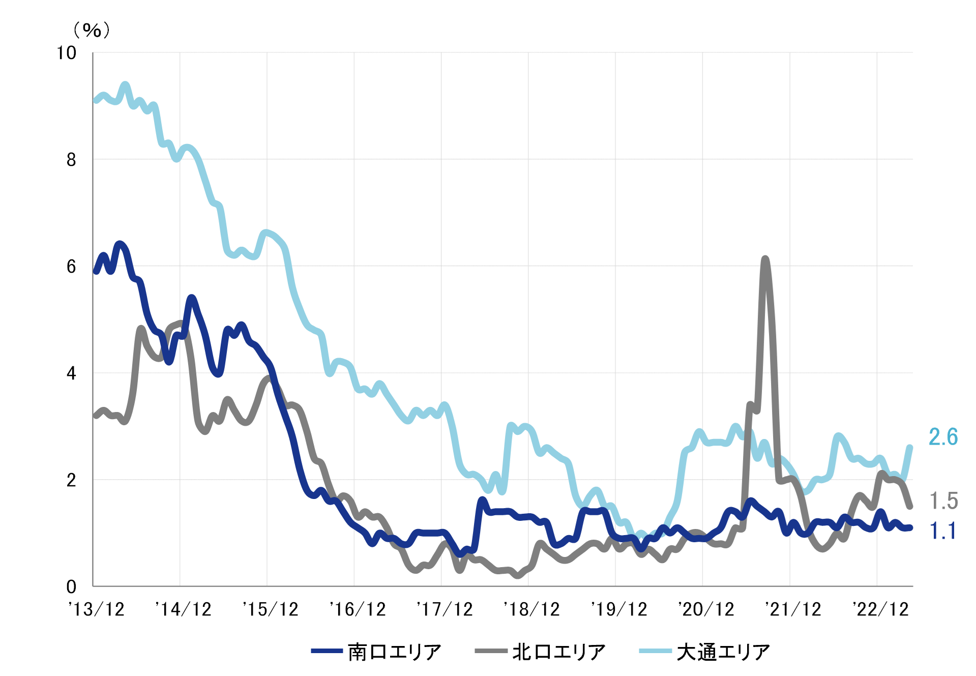全規模ビル 主要エリア 空室率:「大通」大幅に上昇
