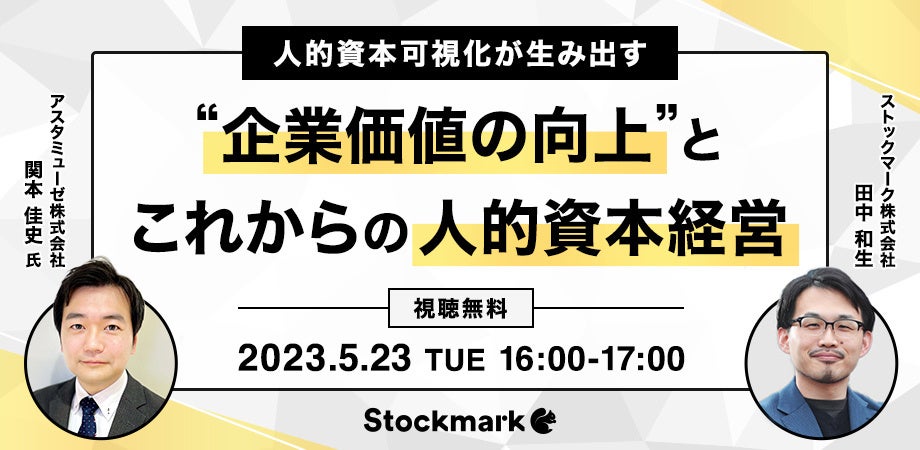 今回のセミナーでは、「企業価値と人的資本の関係性」と「比較可能性」に注目した人的資本可視化スコアを開発するアスタミューゼ株式会社の関本氏から、”企業価値の向上”を実現するための「これからの人的資本経営の在り方」を経営と採用の2つの視点からお伝えし、組織の情報格差を是正し、日々の業務に必要な情報を届けるAseriesを提供するストックマーク株式会社の田中から、現場も納得する人的資本可視化に向けた活動についてお伝えいたします。