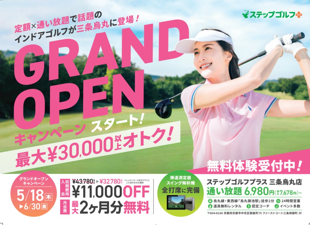 ぜひこの機会に京都市営地下鉄烏丸線・東西線「烏丸御池駅」徒歩2分のステップゴルフプラス三条烏丸店にお立ち寄りください。
