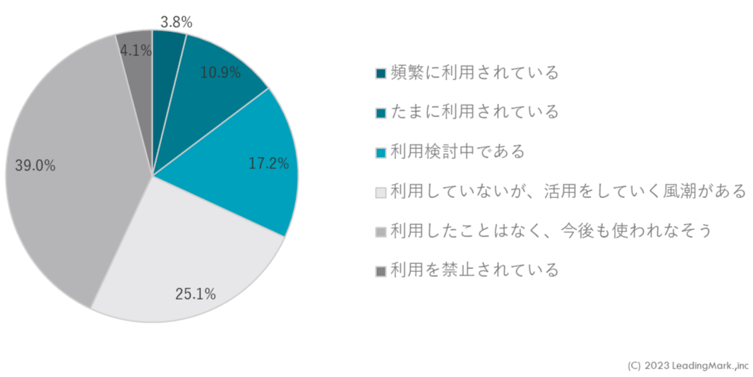 ・ChatGPTは個人での利用に比べて、法人としての活用割合がかなり低く、まだどう活用して良いかが開拓・周知されていないことが伺える。そもそも、ChatGPTで何が出来るかがまず分かっていないという意見が多かった。