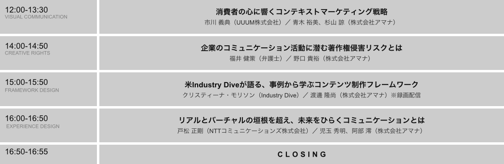その他、プログラムの詳細はWebサイト(https://insights.amana.jp/event/33641/ )をご覧ください。