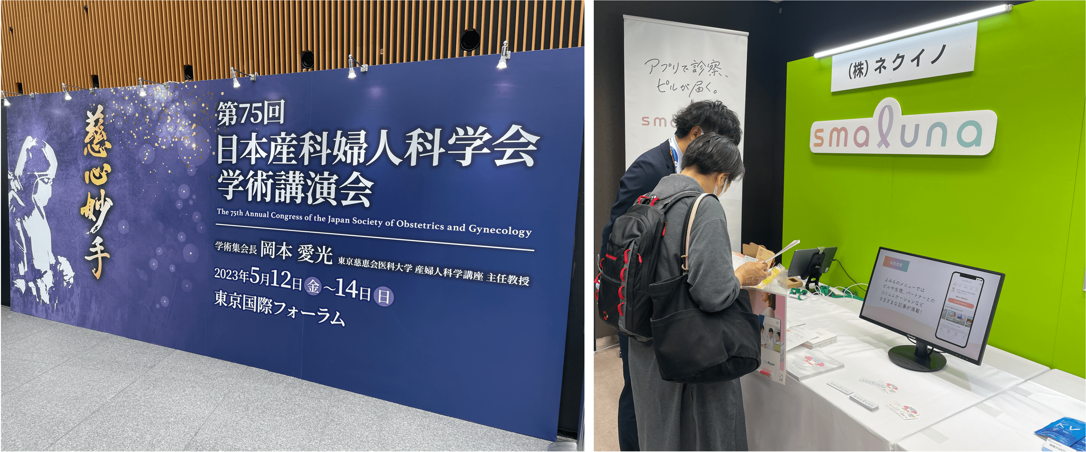 ブースには医師を中心に学生など幅広い立場の人に訪れていただきました。医師からは「オンラインの活用により受診ハードルが下がることは患者さんにとってありがたいこと。医療機関と連携して互いを補え合えたら」「実際にスマルナユーザーがオンライン診療をした医師の指示のもと、検査を受けにくることもある」「若い世代にアプローチでき、選択肢を増やせるのは良い」などのコメントをいただきました。また、今回の講演会で初めてスマルナを知ったという学生からは「医療機関が休みの時など、時間を問わずオンライン診察でピルを処方してもらえるのは若い世代にとって助かる」などのコメントをいただき、オンラインピル処方サービス「スマルナ」が医師とユーザー両者のサポートとして受け入れられている様子が伺えました。