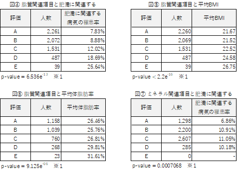肥満に由来する病気(※2)に関しては「ミネラル関連項目」においても関連が認められた。(図⑦)