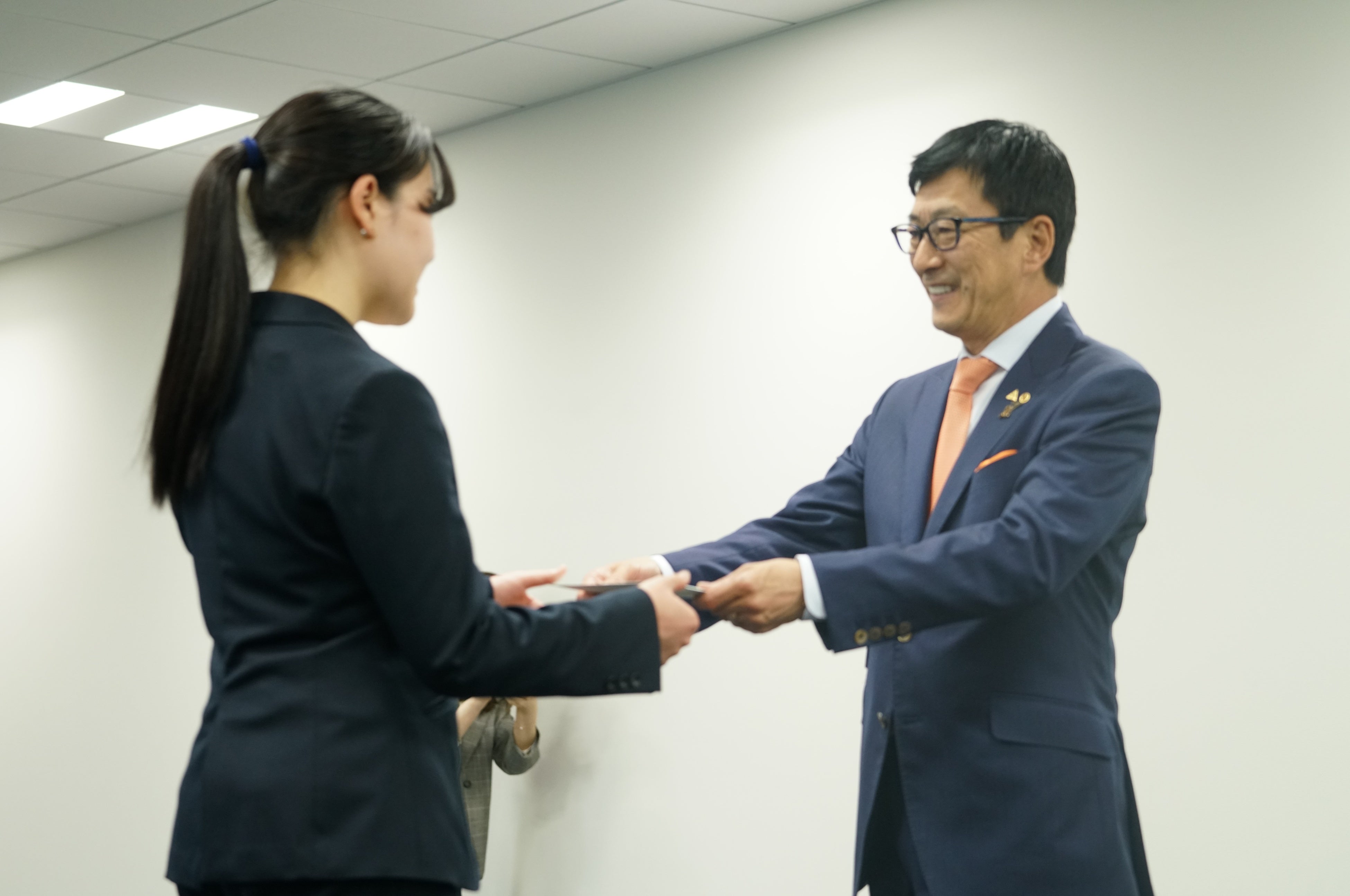 今年もこの4月に入社した24名の新入社員一人ひとりに手渡しました。