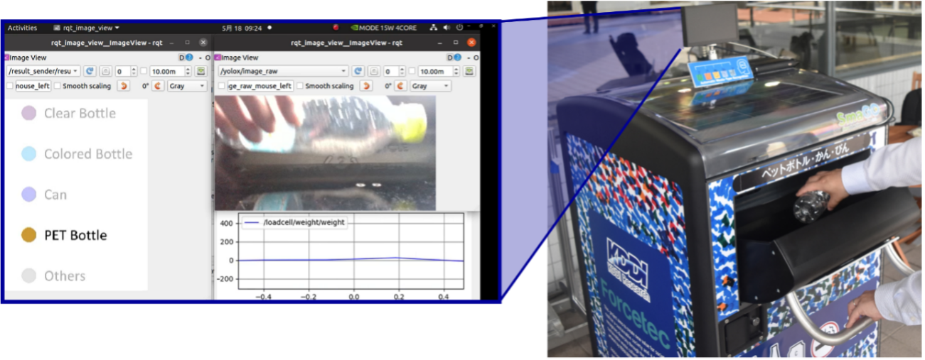 フォーステックとKDDI総合研究所は、ぽい捨てやごみ箱からの溢れを低減するため、県内にSmaGOを設置するとともに、人流データ(注1)やSmaGOで収集したごみの蓄積データをKDDI総合研究所が開発したシミュレータを用いて分析することにより、SmaGOの設置効果の検証を行っています。今回、G7広島サミット国際メディアセンターにおいて、その取り組みを紹介するとともに、KDDI総合研究所が開発したSmaGOに投入されるごみの種類(びん、缶、ペットボトル)を自動で判別する「資源自動判別装置搭載SmaGO」のプロトタイプを、会場内のごみ箱として設置し、デモンストレーションを行っています。