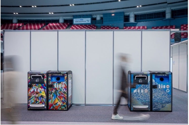 2023年4月1日にヘラルボニーとフォーステックはごみを正しく捨てることからはじまる循環型社会の形成を目指した「スマートアクションプロジェクト」を開始しました(注2)。その一環で、これまでに東京・表参道沿いの歩道にヘラルボニー契約作家のアートでラッピングされたSmaGOを設置し、運用しています。今回、G7広島サミット国際メディアセンターにおいても、開催地広島県在住の作家などのアート作品で彩られたSmaGOを設置・運用しています。サステナブルなごみ回収システムと異彩作家が彩る世界により、アートを楽しみながら社会に新しい価値を生み出し、サステナブルな社会、多様性を認め合う社会の実現を目指しています。