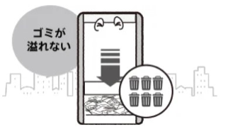 ごみが一定量貯まると、自動で圧縮機能が作動。およそ1/5に圧縮し、1台に600リットルのごみを溜めることが可能なため、ごみ箱が溢れることがなくなり、街の清潔さを保つことができます。