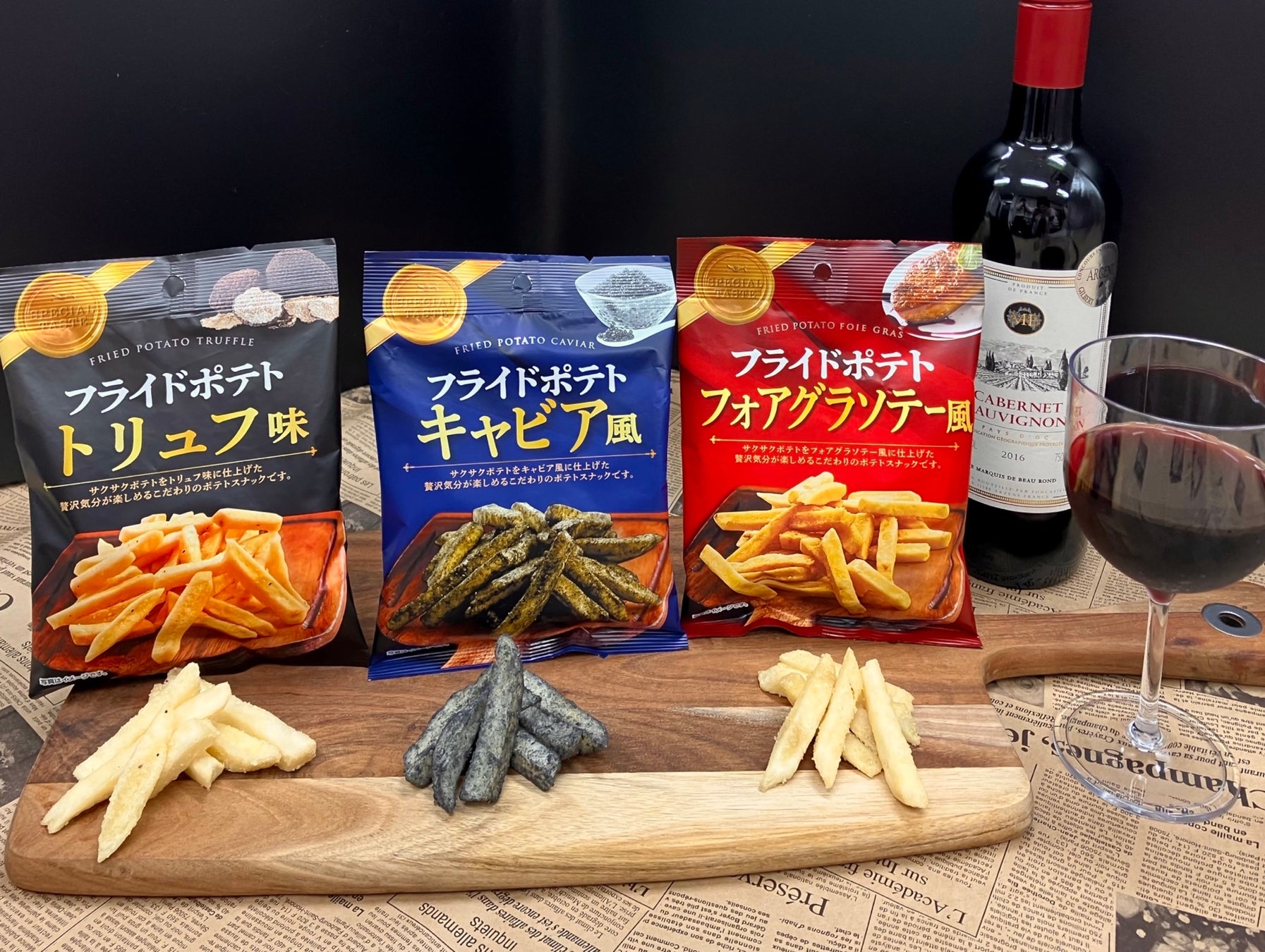 昨今高まっている”高級食材を手軽に味わいたい”というニーズに合わせ、世界三大珍味であるトリュフ、キャビア、フォアグラの味わいに仕上げたフライドポテトです。