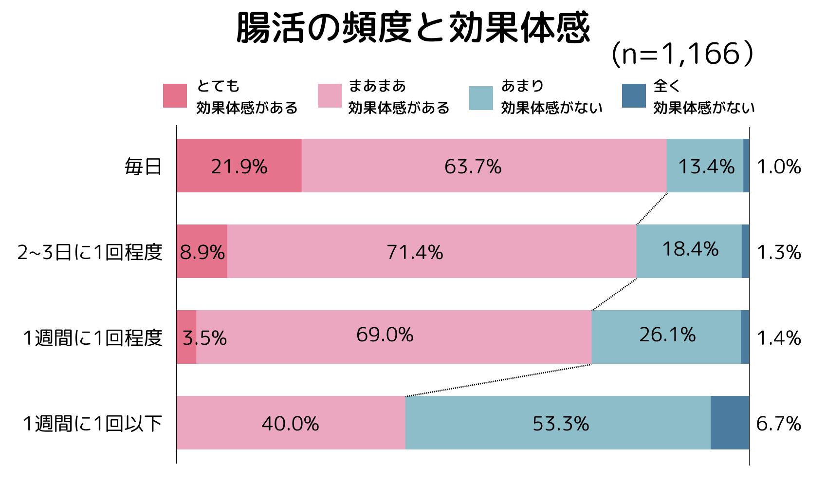 腸活の頻度が高くなると、改善効果の実感もしやすくなる