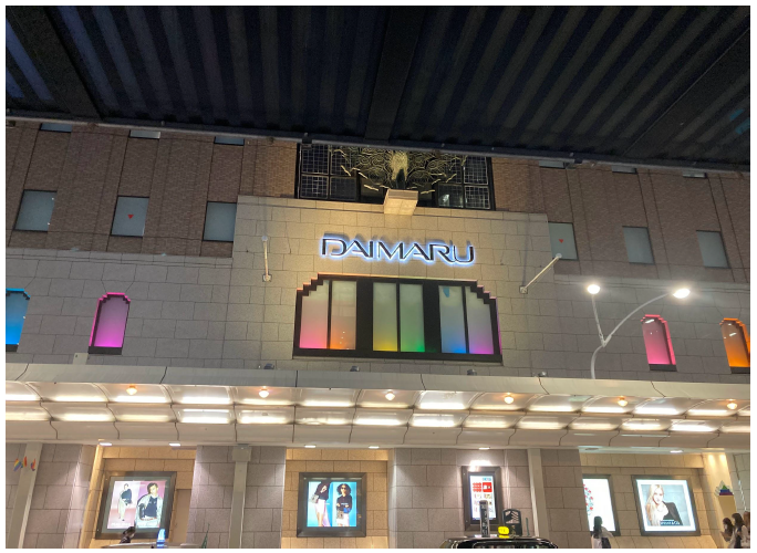 内容:期間中、大丸京都店の外壁がレインボーカラーにライトアップされ、一部のエントランス及び地下ウィンドウがレインボーカラーになります。