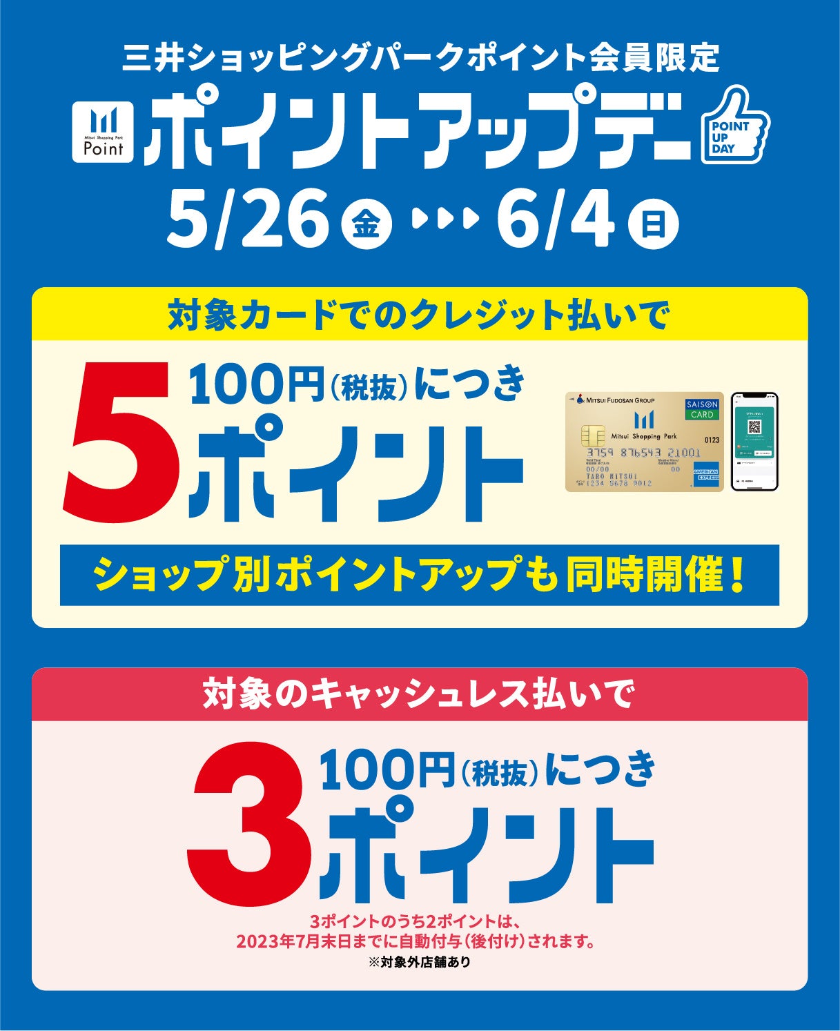 1ポイントのところ100円(税抜)につき3ポイントとなるポイントアップ!