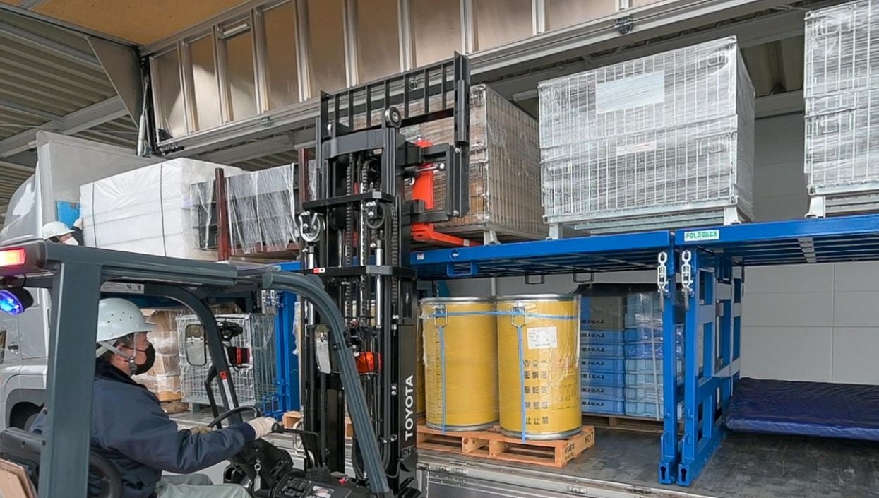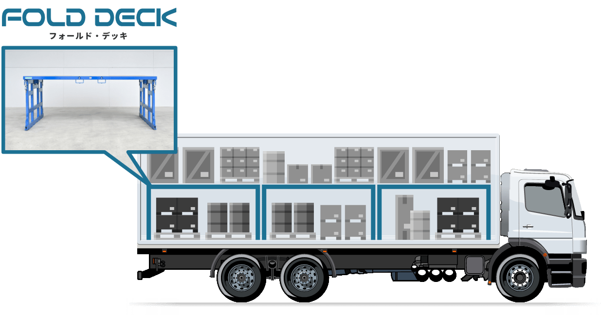 また、フォールド・デッキは折り畳んだ状態でも荷物の積載が可能であり、不要時はトラックの荷台に乗せたまま、コンパクトに保管ができます。