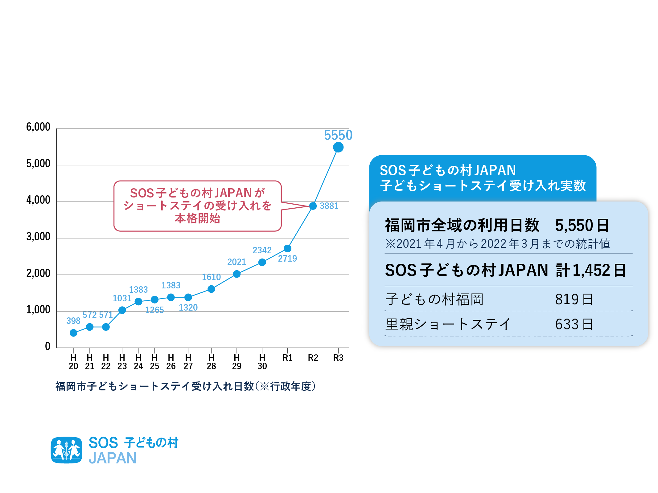 ・SOS子どもの村JAPAN 子どもショートステイ受け入れ実数(右)