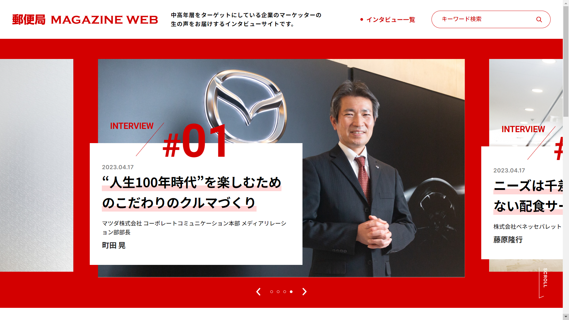 この圧倒的ボリュームを誇る中高年・シニア市場に対して、どのような戦略を持ち商品・サービスの市場拡大に繋げているのか。ビジネスの第一線で取り組まれている方々にフォーカスし、各社の取り組みを紹介していきます。また、メディアとしての郵便局のイメージや魅力、今後の期待感などもお聞きします。