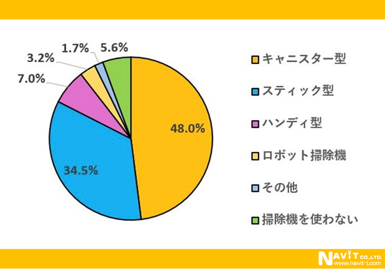 昔からあるオーソドックスな「キャニスター型」が40.8%です。次に軽量が売りの「スティック型」が34.5%で、さらに軽量タイプの「ハンディ型」が7.0%と続いています。