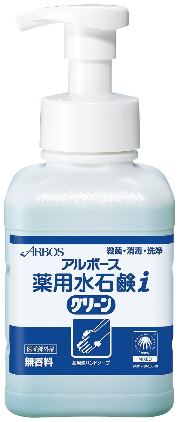 アルボース薬用水石鹸iグリーンは植物由来の洗浄成分で地球環境にやさしい製品です。殺菌成分としてイソプロピルメチルフェノール配合で豊かな泡立ちで汚れをすっきり落とします。