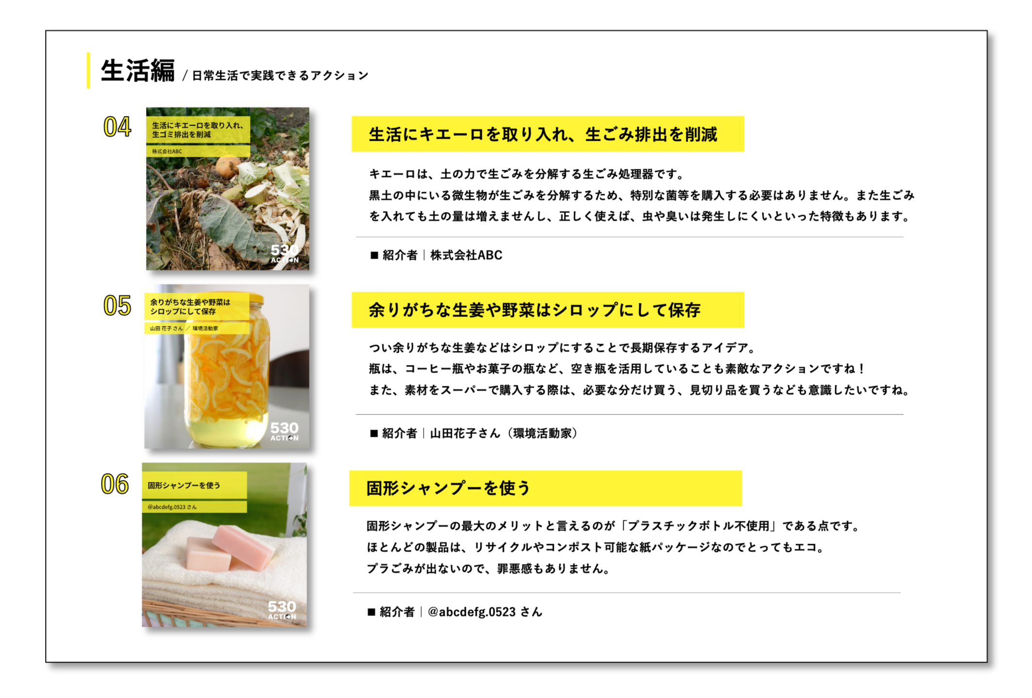 日常生活で小さなことでもごみ削減のために実践している個人、自らサステナビリティプロジェクトを立ち上げ活動するフロントランナー、そして想いをもち行動する企業など、みんなが一つとなり、ともに私たちが生きる未来について考え、行動していきたいという思いで、昨年530ACTIONを立ち上げました。