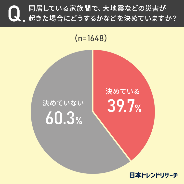 39.7%の方が、災害が起きた場合にどうするか家族間で「決めている」と答えました。