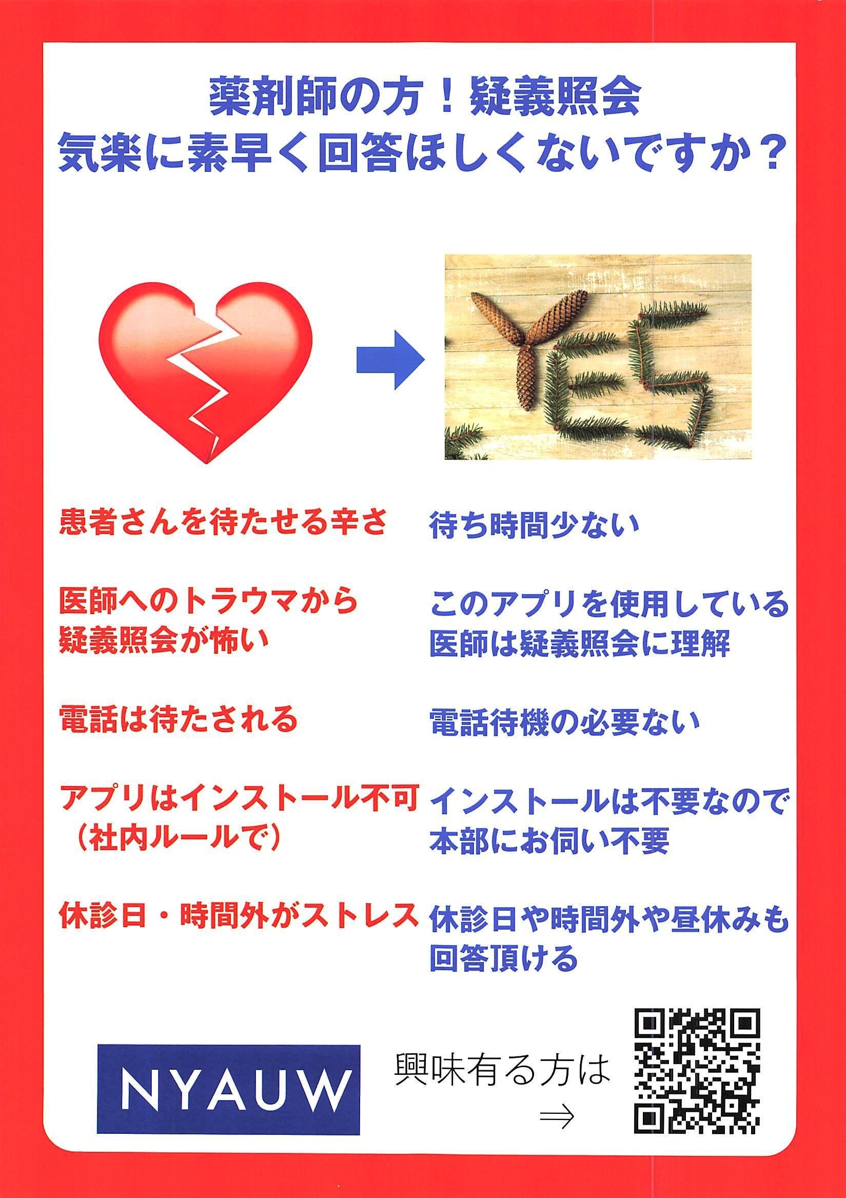 そういったクリニックや薬局の参加が増えていくことで、薬剤師と医師が円滑にコミュニケーションできる機会を増やして 各々の専門性を活かし、双方で質問ができ、ゆくゆくは無用な疑義照会等が要らなくなるくらい 円滑にコミュニケーションできる活動になるためのスタートプロジェクトになればと考えております。
