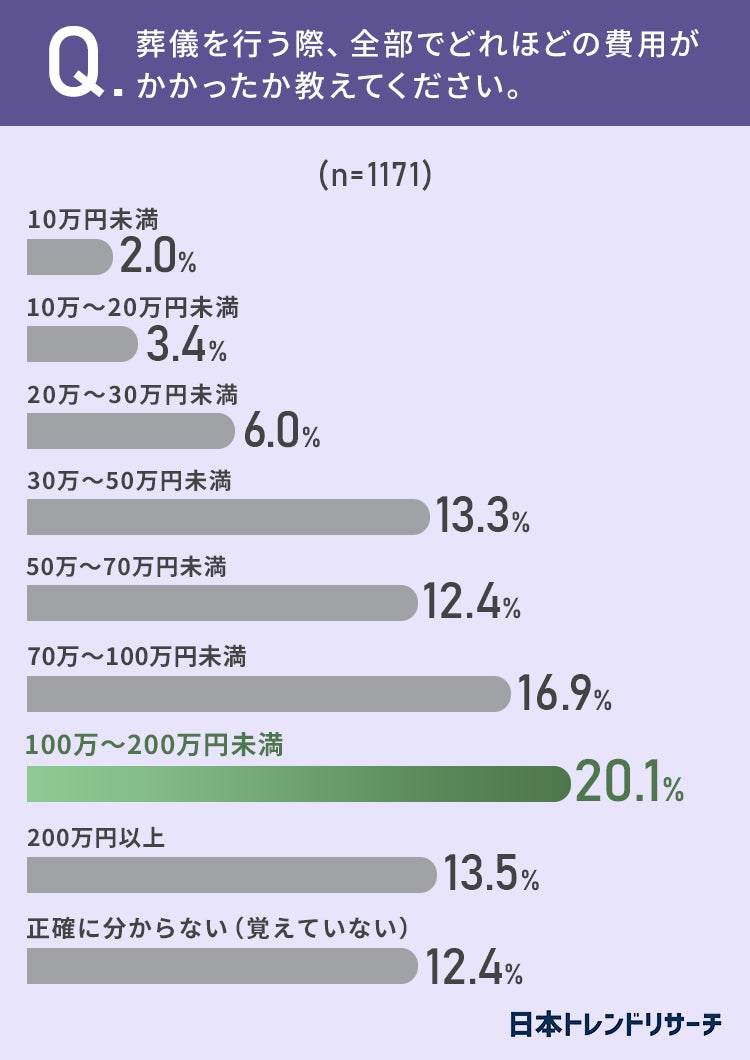 質問1:葬儀を行う際、全部でどれほどの費用がかかったか教えてください。