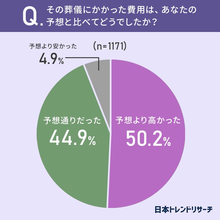 さらに、その葬儀にかかった費用は予想と比べてどうだったか聞いてみました。