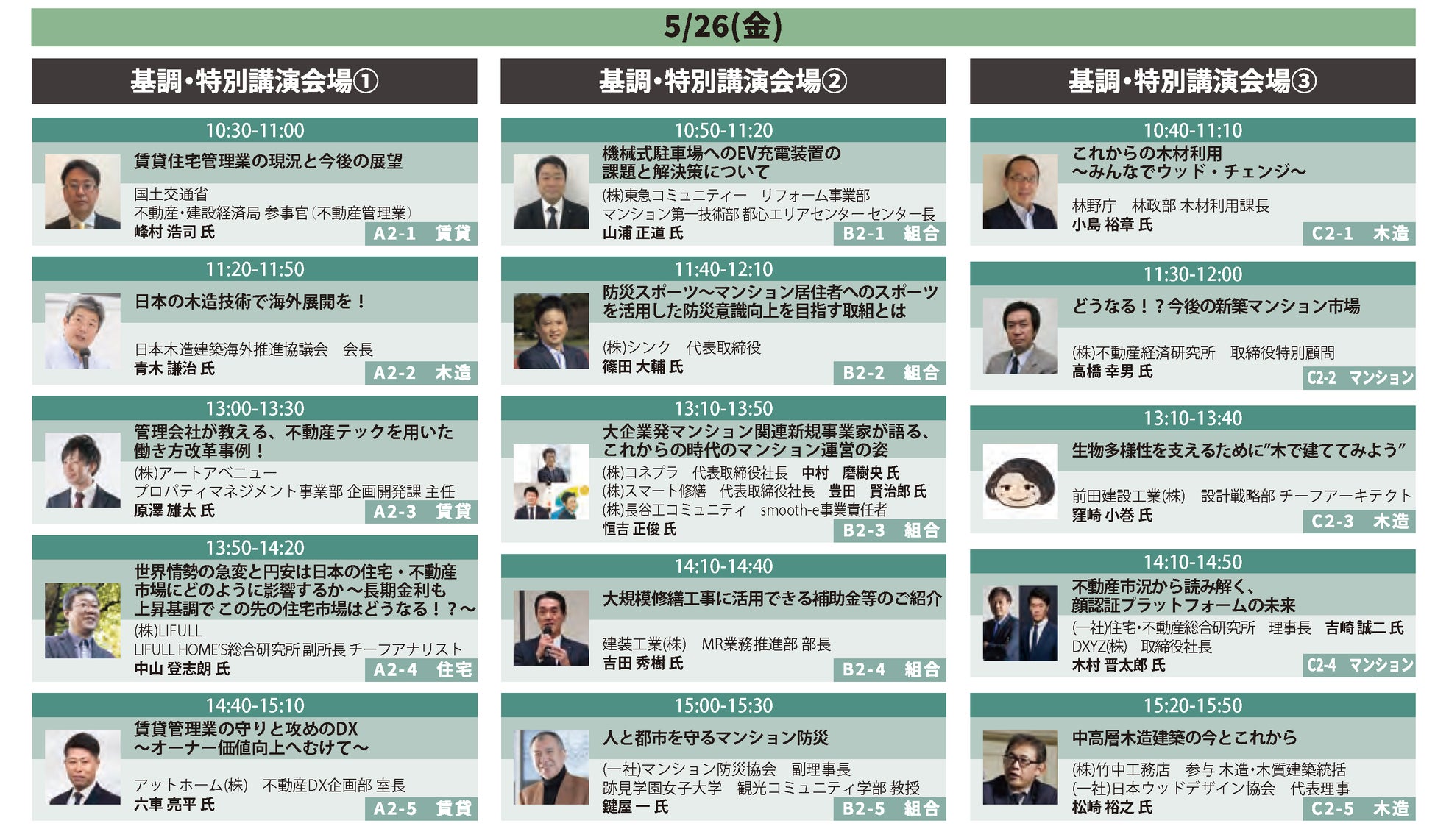 「住宅ビジネスフェア」「非住宅 木造建築フェア」「マンション総合EXPO」「賃貸住宅・アパートEXPO」「マンション管理組合 サポート展」の専門展示会5展で構成。