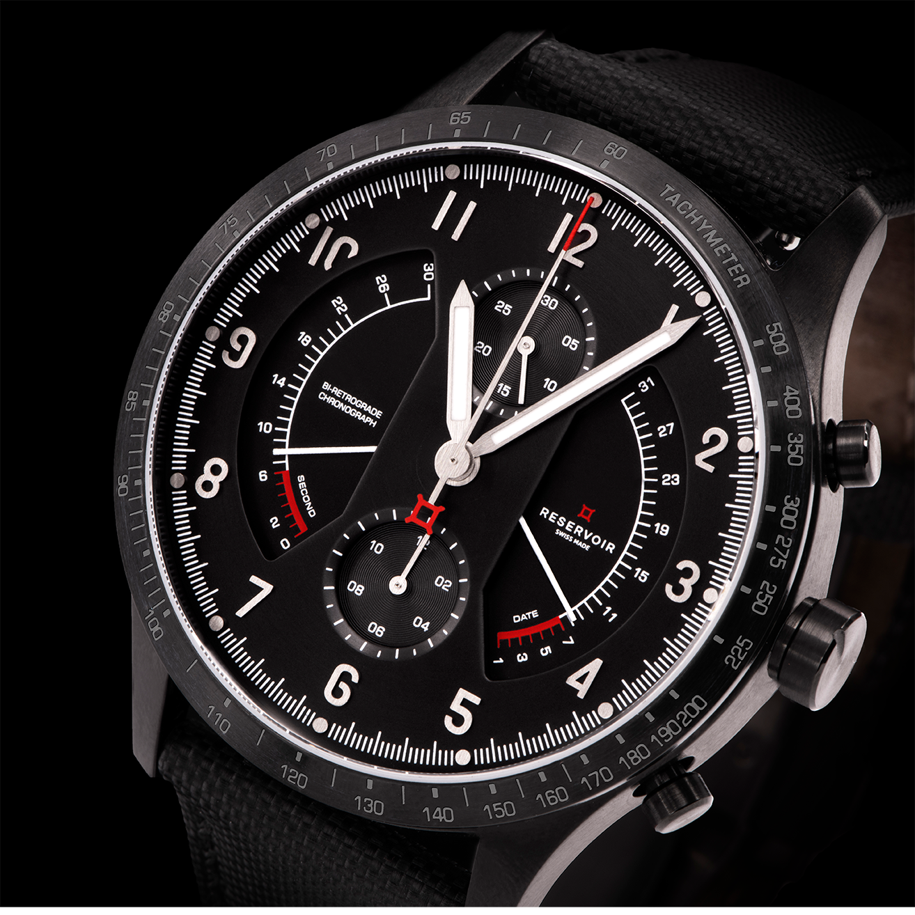 ヴィンテージ計器からインスピレーションを得て製作されるレゼルボワールの時計には、⾃動⾞、航空機、海洋などの世界で躍動するメーターの機能性と審美的魅⼒がデザインに活かされています。タコメーターを想起させる可動範囲が240度のレトログラードミニッツ、距離計を連想させるジャンピングアワー、燃料計を彷彿とさせるパワーリザーブという3つの複雑機構を組み合わせた、斬新な時間表⽰を特徴としています。