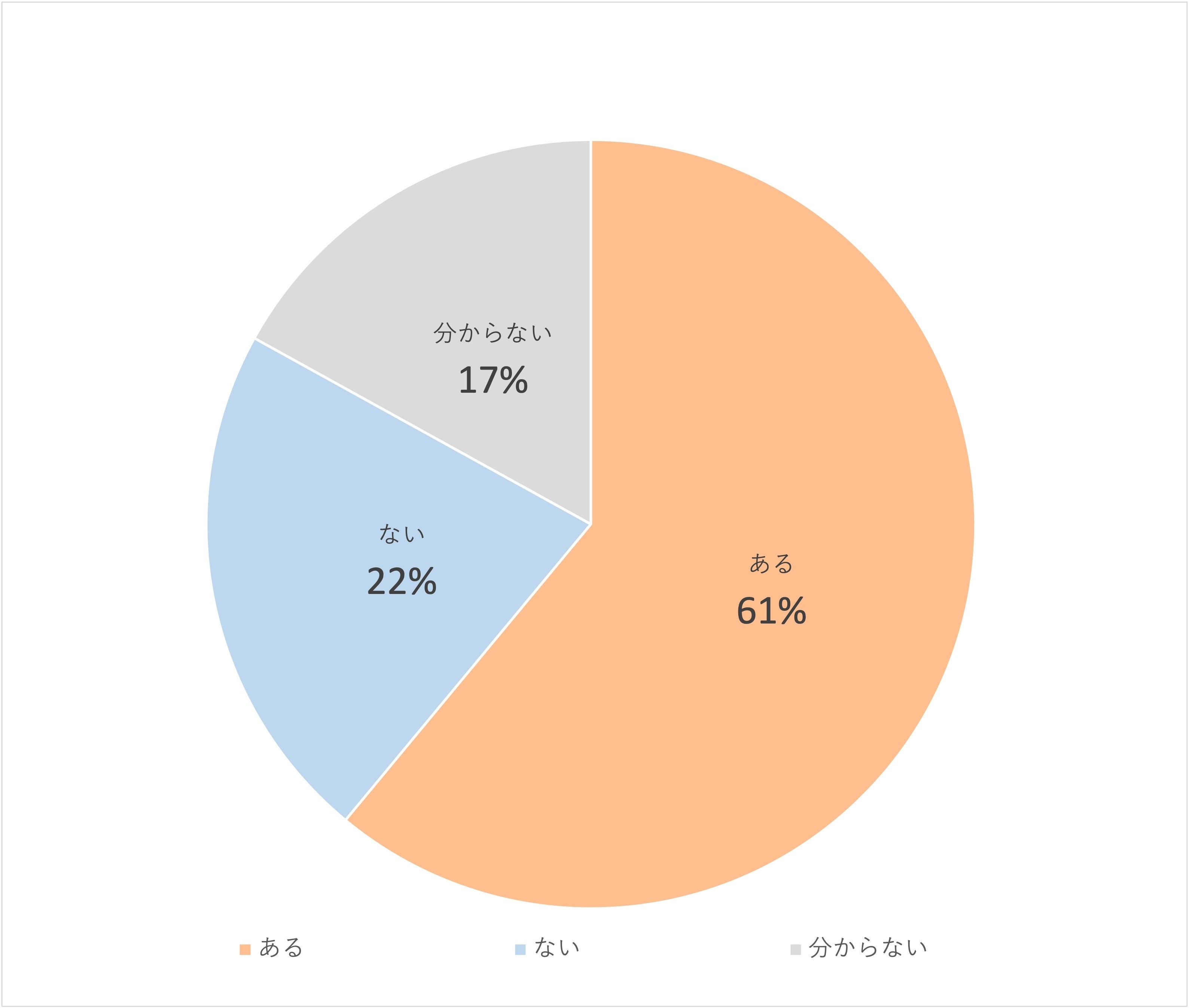 結果は「ある」が61%、「ない」が22%、「わからない」が17%となった。選挙への興味関心の質問で「ある」と回答した割合や、選挙に行くかどうかの質問で「行く」と回答した割合におおよそリンクしている。