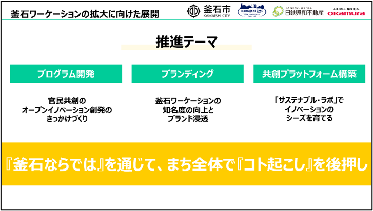 これにより日鉄興和不動産とオカムラは釜石の地方創生における貢献、また新しい働き方の研究を釜石市とともに推進してまいります。