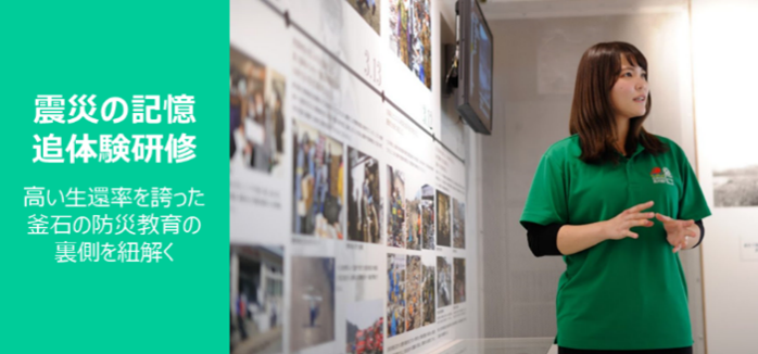 釜石市では、企業からの研修型の受け入れを中心に、釜石ならではの「研修」「体験プログラム」によって学びを得る『ラーニング・ワーケーション in 釜石』を提供。震災を経験した釜石だからこそ提供できる震災関連の研修プログラムから、リーダー人材育成やチームビルディング、防災意識の向上、また持続可能な観光実践の先進地から学ぶSDGsなど、企業課題の解決に貢献することを目指しています。