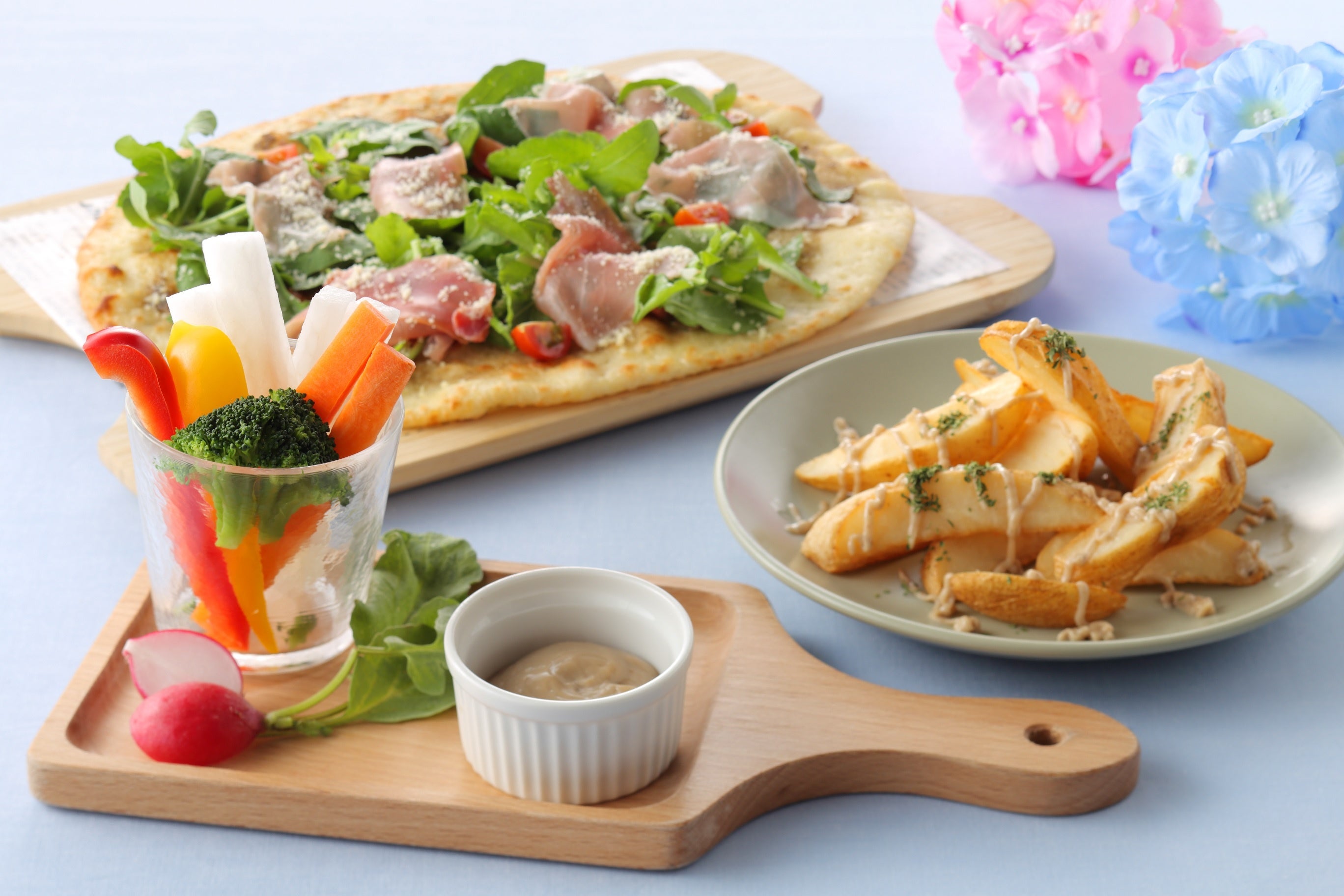 夏野菜&鮎のコラボ「季節の野菜スティック 鮎チョビとマヨネーズを添えて」・・・660円 他