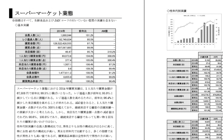 さらに、今回は主要カテゴリーレポートのカテゴリー数を増やし、『スーパーマーケット編』では、食品・日用品80カテゴリーに加え、生鮮40カテゴリー、『ドラッグストア編』では、食品・日用品100カテゴリーのレポートを掲載しています。