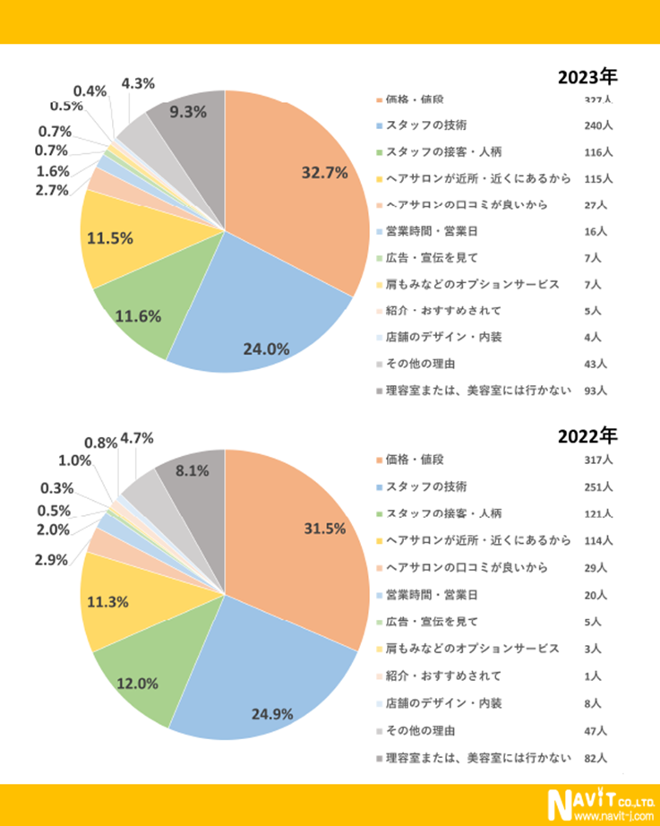 そんなヘアサロンへのニーズがどのように変化したのか。2022年のアンケートと比較しながら2023年のトレンドを見ていくことにしましょう。