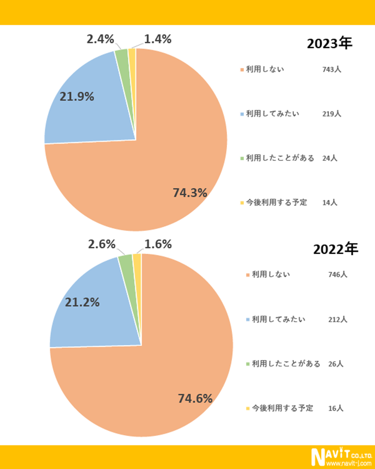 「利用したことがある」という方も2.4%いらっしゃいます。昨年は2.6%でしたので、ほぼ変化ないです。