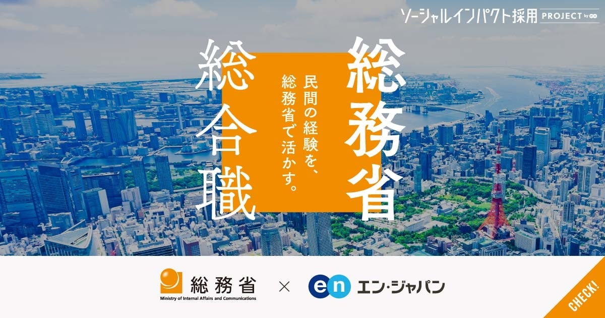近年は、デジタル化の進展や人口減少など、日本を取り巻く環境は急激に変化。多様化する社会課題を迅速に解決すべく、総務省では積極的に民間出身者をはじめとする外部人材の登用に取り組んできました。これまでもエン・ジャパンを通して、過去数年にわたって外部人材の採用に成功。そして今回も、幅広いバックグラウンドを持つ人材を総合職(事務系/技術系・課長補佐級/係長級)のポジションで複数名採用する考えです。