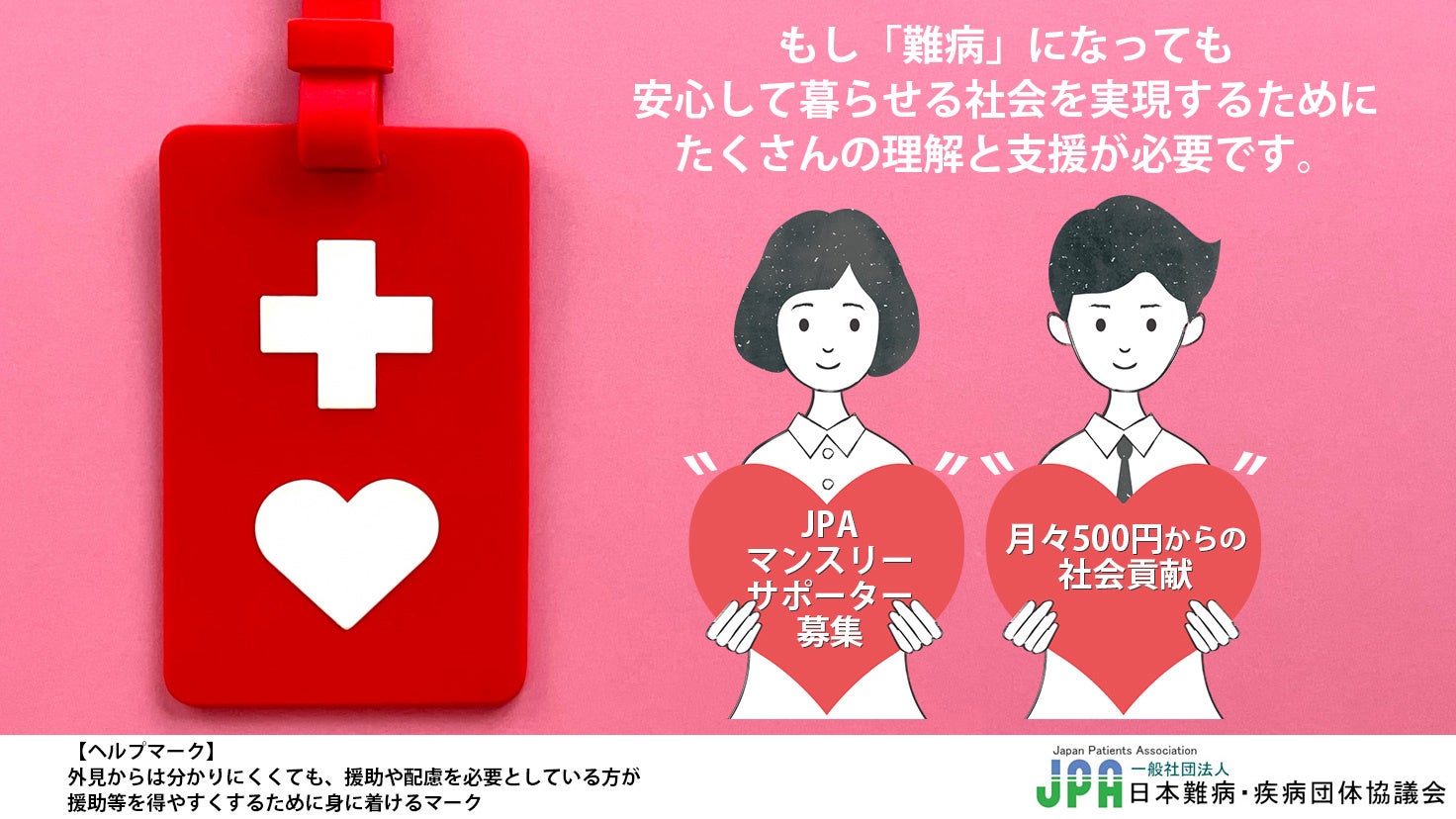 「JPAマンスリーサポーター」を通じて、もしも「難病」になっても、地域で尊厳をもって安⼼して暮らせる社会を実現すること、病気や障害による障壁をなくし「人間の尊厳がなによりも大切にされる社会の実現」を目指している私たちの活動と新たな取り組みへの挑戦を、ぜひ応援していただけましたら幸いです。皆様の温かいご支援をお待ちしております。