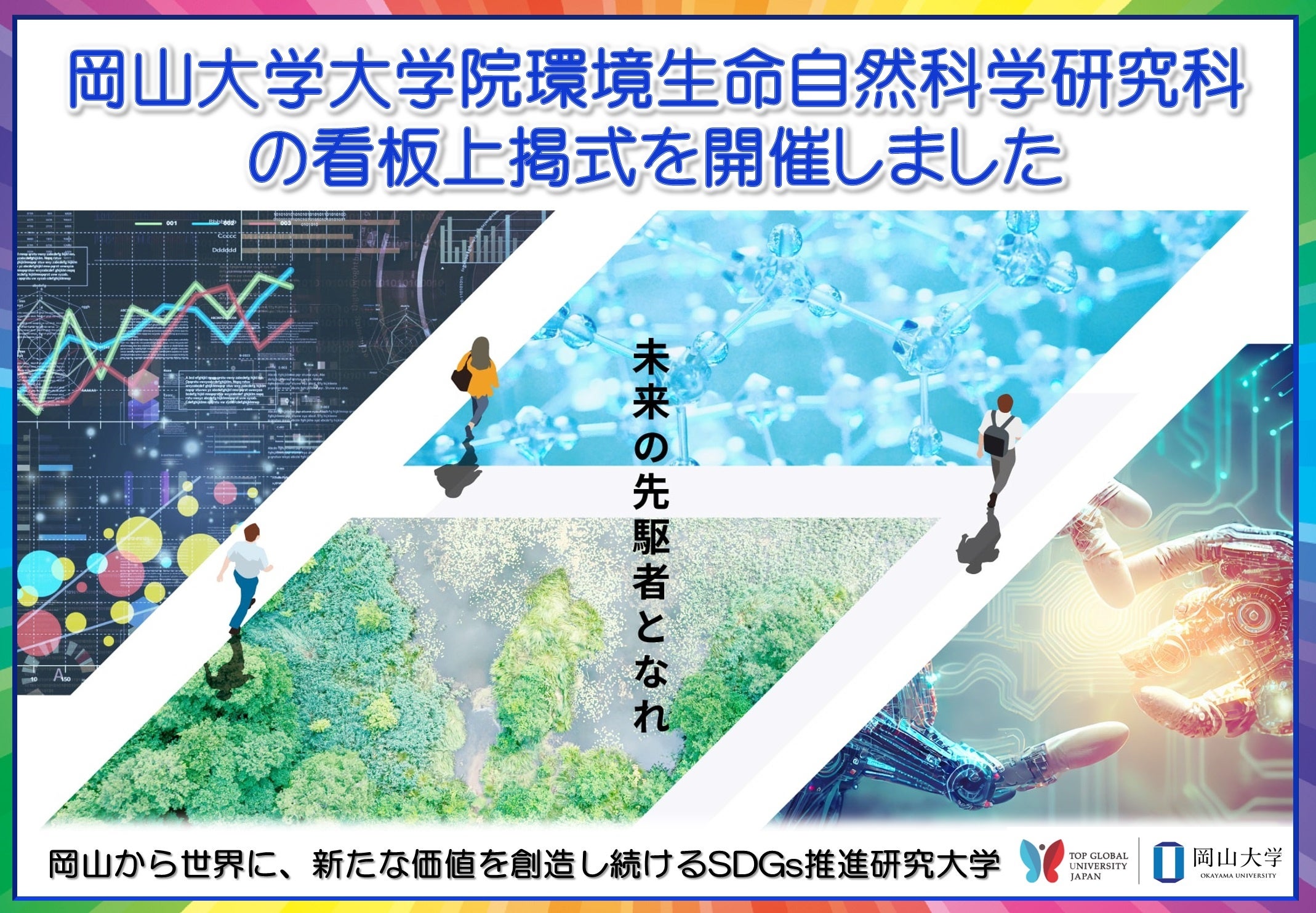 国立大学法人岡山大学(本部:岡山市北区、学長:那須保友)は本年4月に大学院自然科学研究科及び大学院環境生命科学研究科を再編・統合した「大学院環境生命自然科学研究科」を設置し、2023年5月18日に同研究科の看板上掲式を本学津島キャンパスで挙行しました。