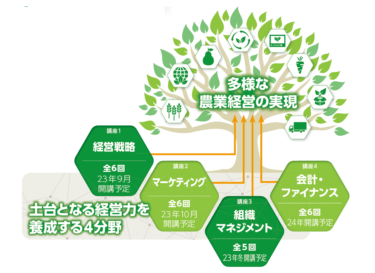 農業界は今、世代交代や大規模化、IT技術の進歩、SDGsへの関心の高まりなどの流れを受け、大きな変革期にあります。そこで求められる「経営力」は、高度化の一途をたどっています。