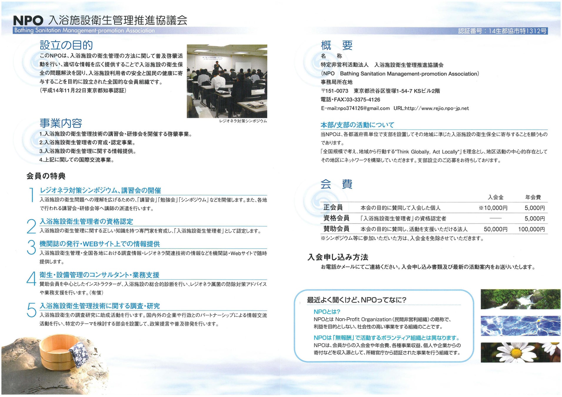 当会の活動目的は、入浴施設における正しい衛生管理方法を周知し、衛生保全の問題を解決することで安心して入浴していただける安全な入浴環境を保全することです。