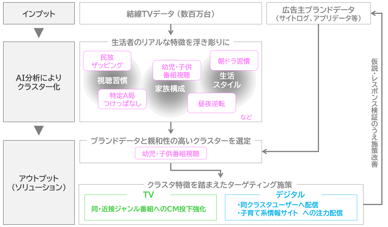 - TVでの広告接触が少ない教育・子供向け番組視聴クラスターをターゲットにデジタル広告配信