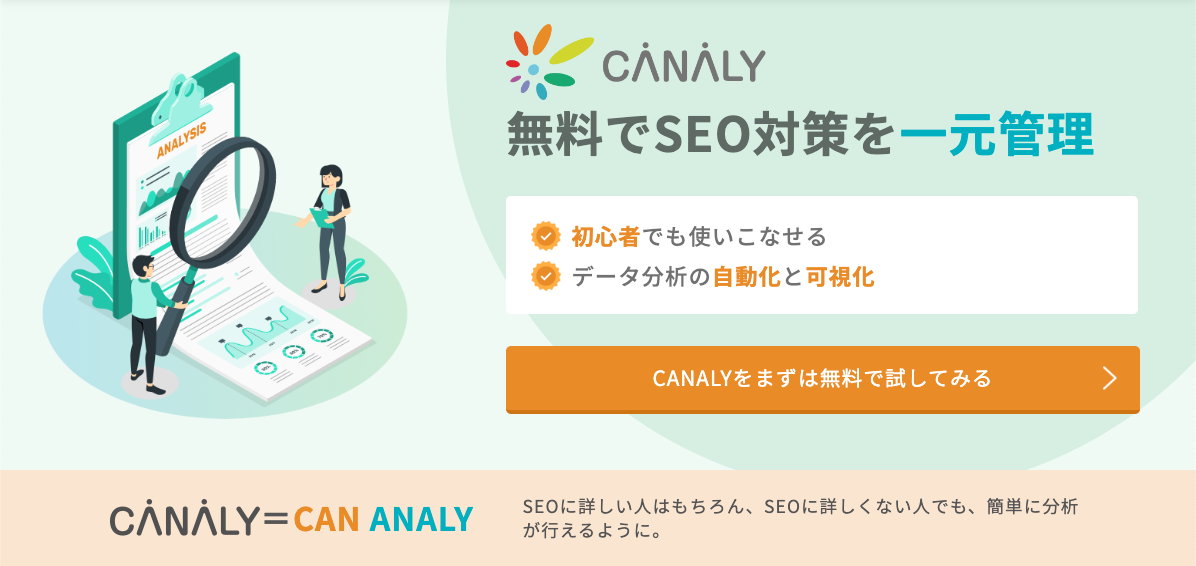 「CANALY」は初心者からプロまで、どなたでも簡単にお使いいただけるSEO分析ツールです。