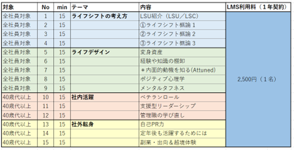 *ライフシフト社のLMS(ラーニング・メディア・システム:学習管理システム)による提供になります。