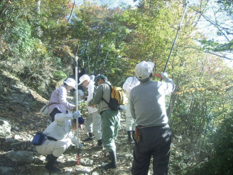①森林で種子を採取
