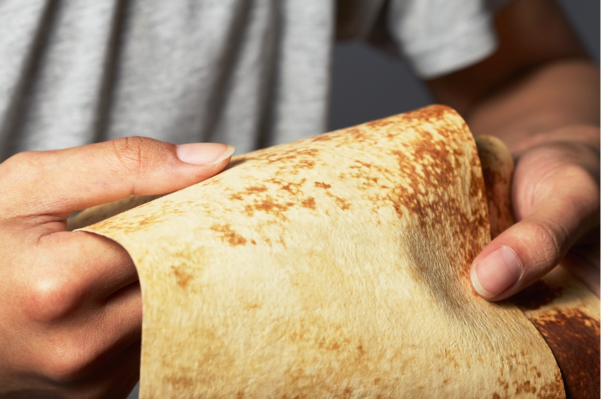 マッシュルームレザーは薄く培養して重ねたキノコの菌糸体がそのまま生地になっており、他の原材料などを混ぜ合わせていないため、100%自然に還る素材です。海外でキノコは断熱材として建築業で活躍していたり、家具やファブリックにレザーに代わる素材として活用されており、革新的なヴィーガン素材として注目を集めています。