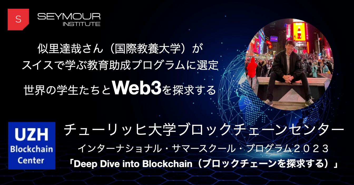 チューリッヒ大学ブロックチェーンセンターのTessone教授とSEYMOURは、同センターの設立当初からスイスと日本のブロックチェーンにおける産学連携に向けた取り組みで協力してきました。2020年から始まったインターナショナル・サマースクール「Deep Dive into Blockchain(ブロックチェーンを探求する)」に、SEYMOURのスイスで学ぶ教育助成プログラムより、日本から計5名の学生(山口大学工学部、大阪大学、同志社大学、国際教養大学)たちに助成金を提供してきました。チューリッヒ大学はブロックチェーン教育に取り組む教育機関として、欧州で1位、世界では3位に評価されています*2。