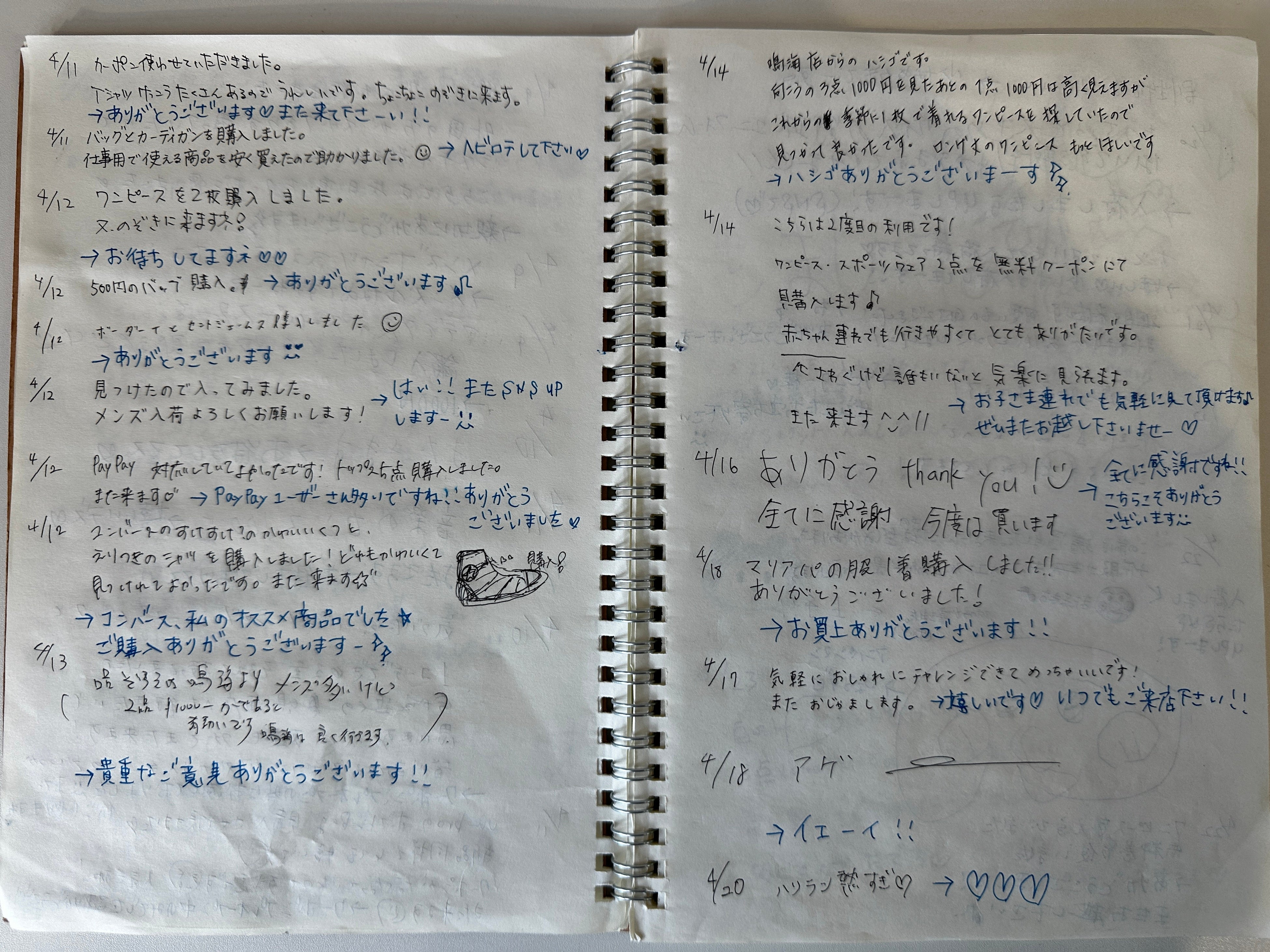 セルフデフルギではご来店いただいたお客様とのコミュニケーションのために、ノートを設置しております。
