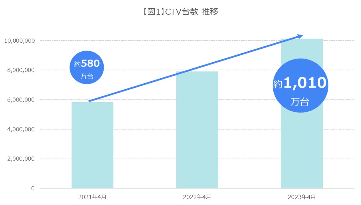 2023年4月に、「TVBridge」で活用可能なCTVの台数は1,000万台を上回りました。(図1)。活用可能なCTV台数の増加により、「TVBridge Ads」(*2)でリーチできるユーザー数の増加が期待できます。