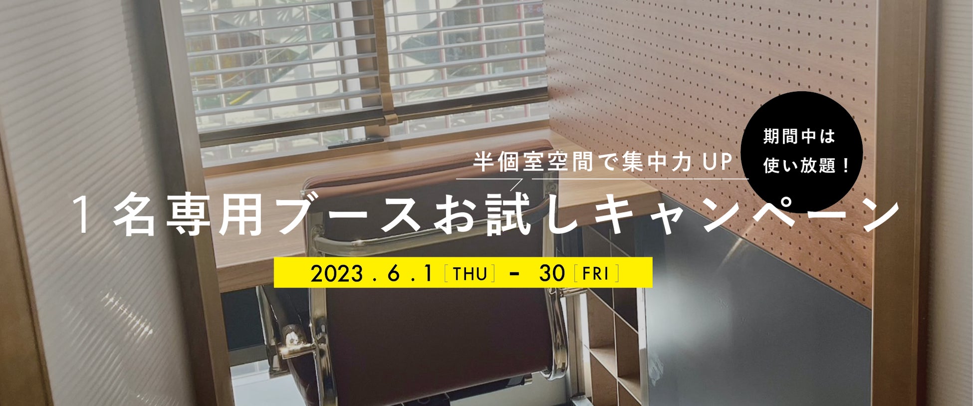 【ノマドワーカー必見】1名専用ブースお試しキャンペーン実施|コワーキング・シェアオフィスBUSO AGORA