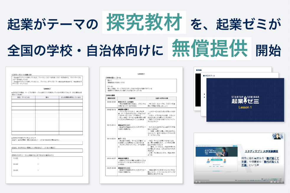 現状、無償提供の期間は2023年度中となっていますが、多くの先生方に起業をテーマにした探究の魅力を感じていただき、今年度夏休み明けからの授業でご活用いただけますと幸いです。